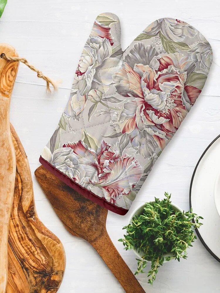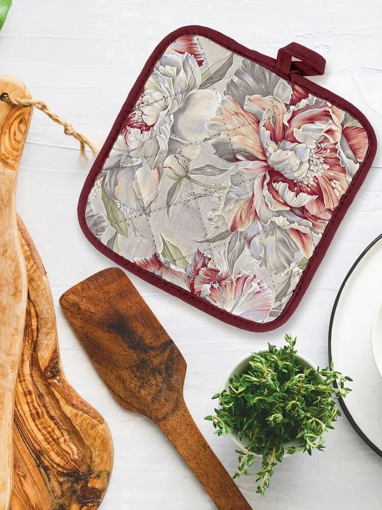 Подарочный набор прихватки для кухни (прихватка 18х18, прихватка-рукавица 18х28) "Mia Cara" рис 14057-1 Душистый пион