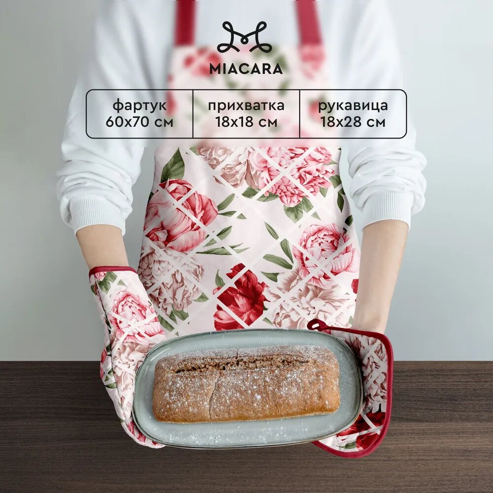 Подарочный набор прихватки для кухни (прихватка 18х18, прихватка-рукавица,18х28, фартук 60х70) "Mia Cara" рис 30200-1 Душистый пион