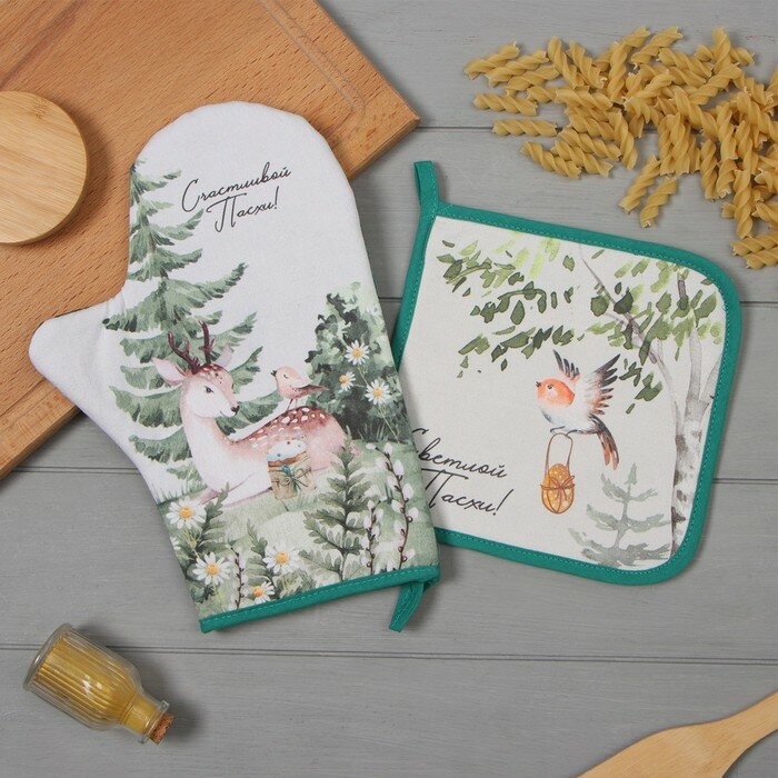 Купить Этель Набор кух. Этель "Лесная сказка" варежка-прихватка 20х28см, прихватка 19х19см,100% хл