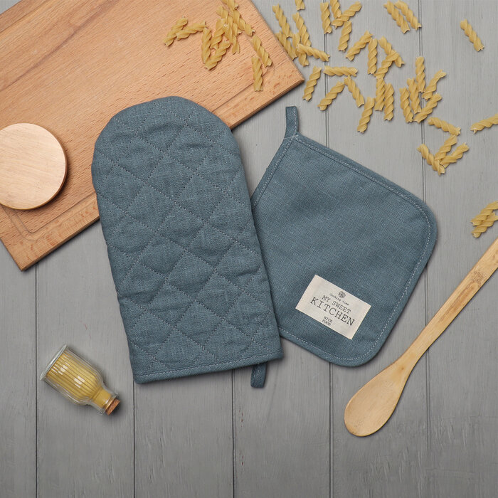 СохранитьЭтель Набор кух. ECO turquoise: варежка 15x28см, прихватка 19x19см, 100% лён, 245 г/м2 10245287 интересное: