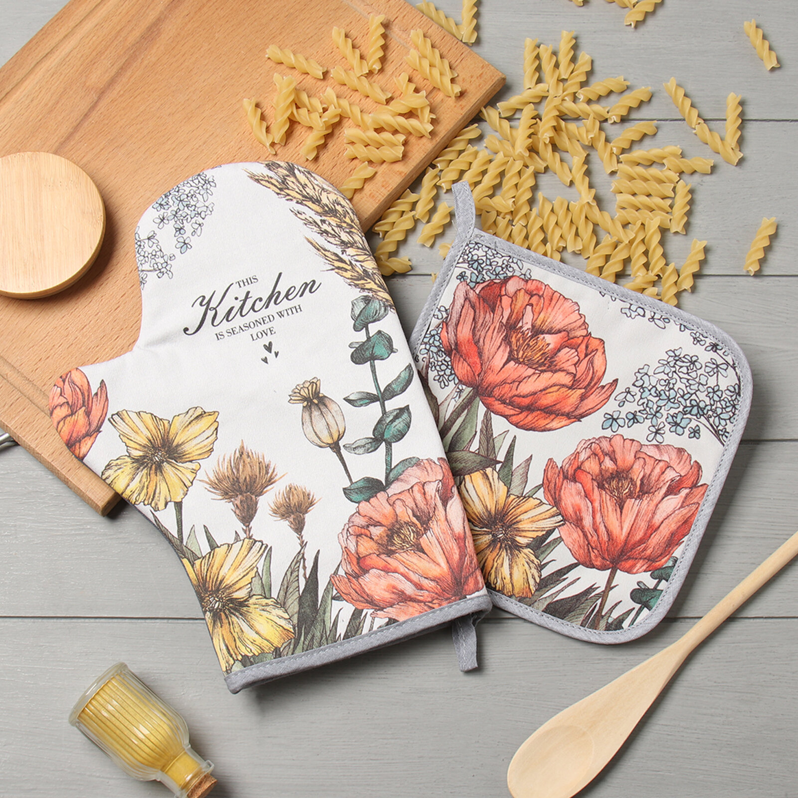 Набор кух. Этель "Полевые цветы" варежка-прихватка 20х28см, прихватка 19х19см,100% хл