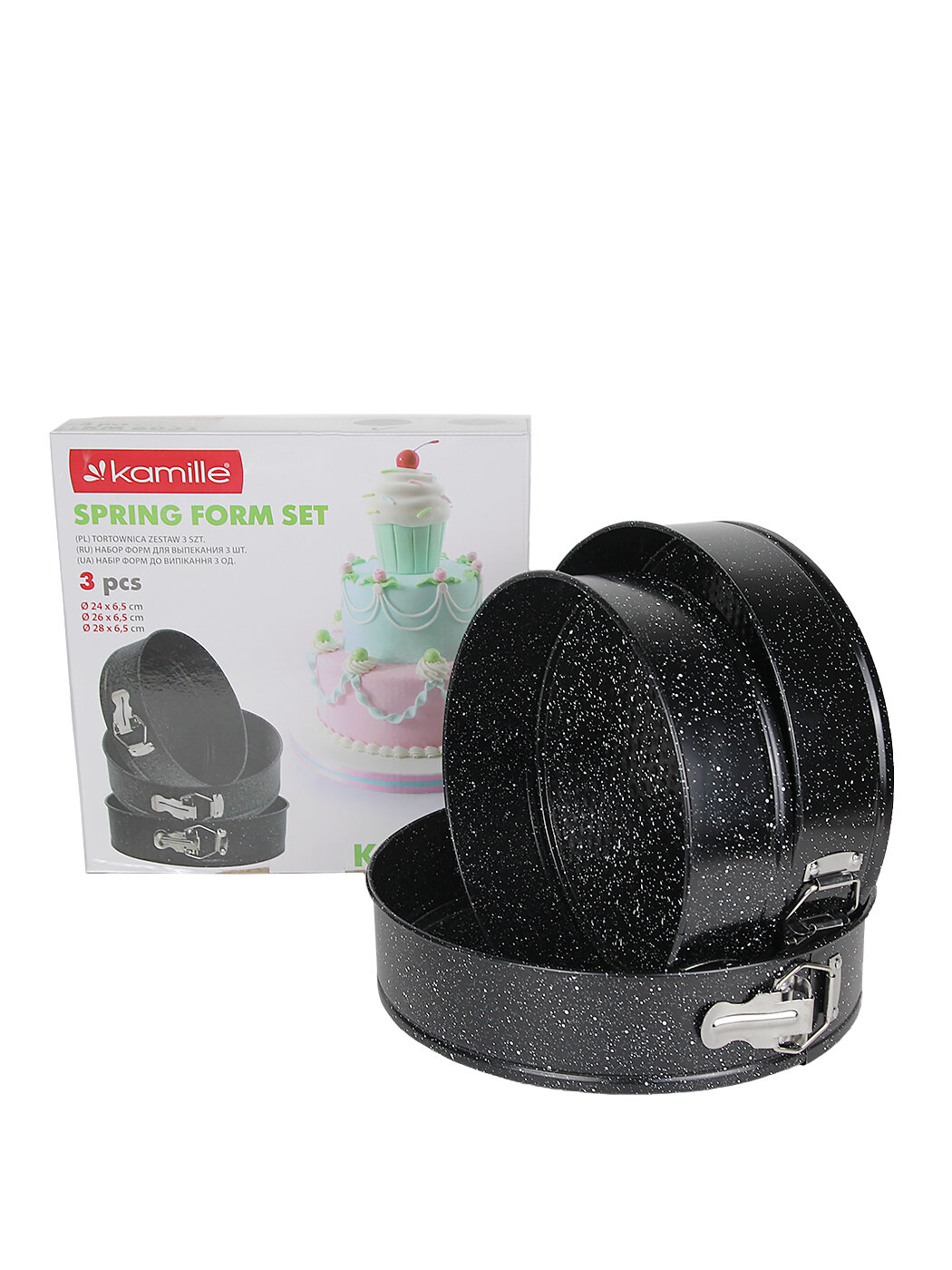 Купить Набор разъемных форм для выпечки 3 шт. Kamille KM-6031 (d24/26/28х6,5 см) из углеродистой стали (6031 / черный)