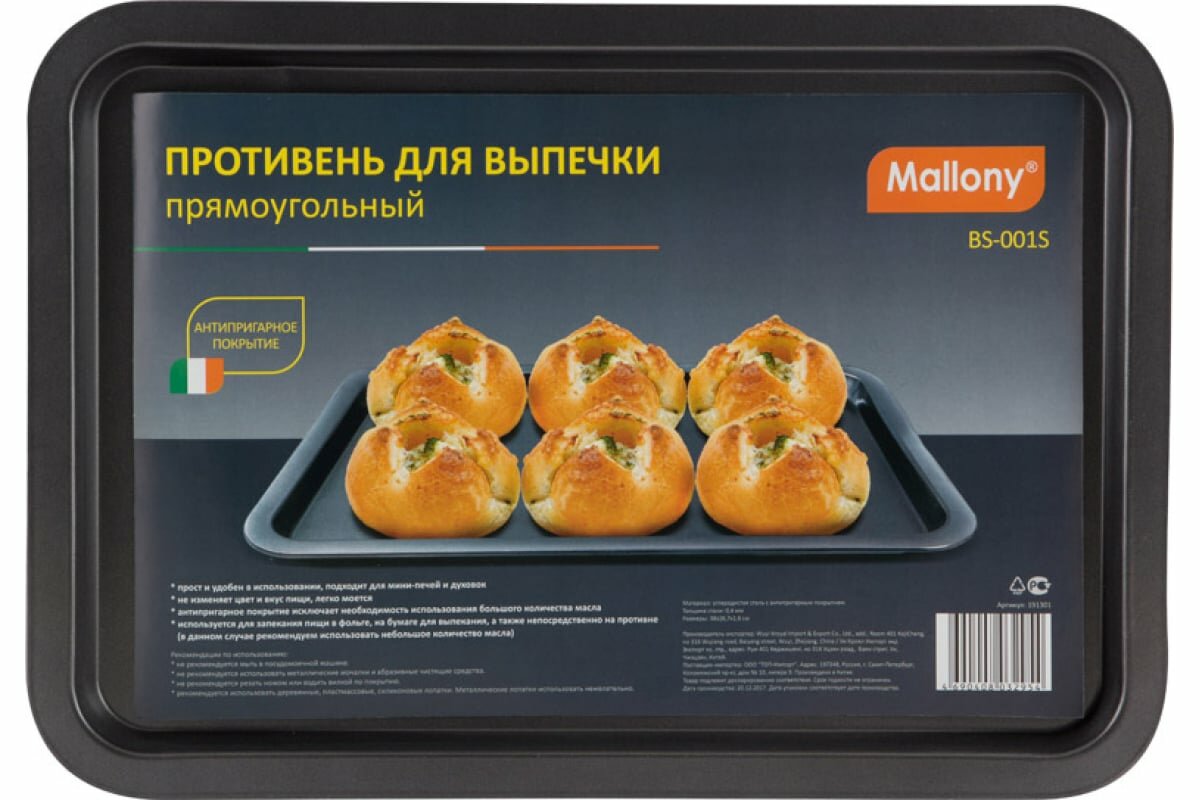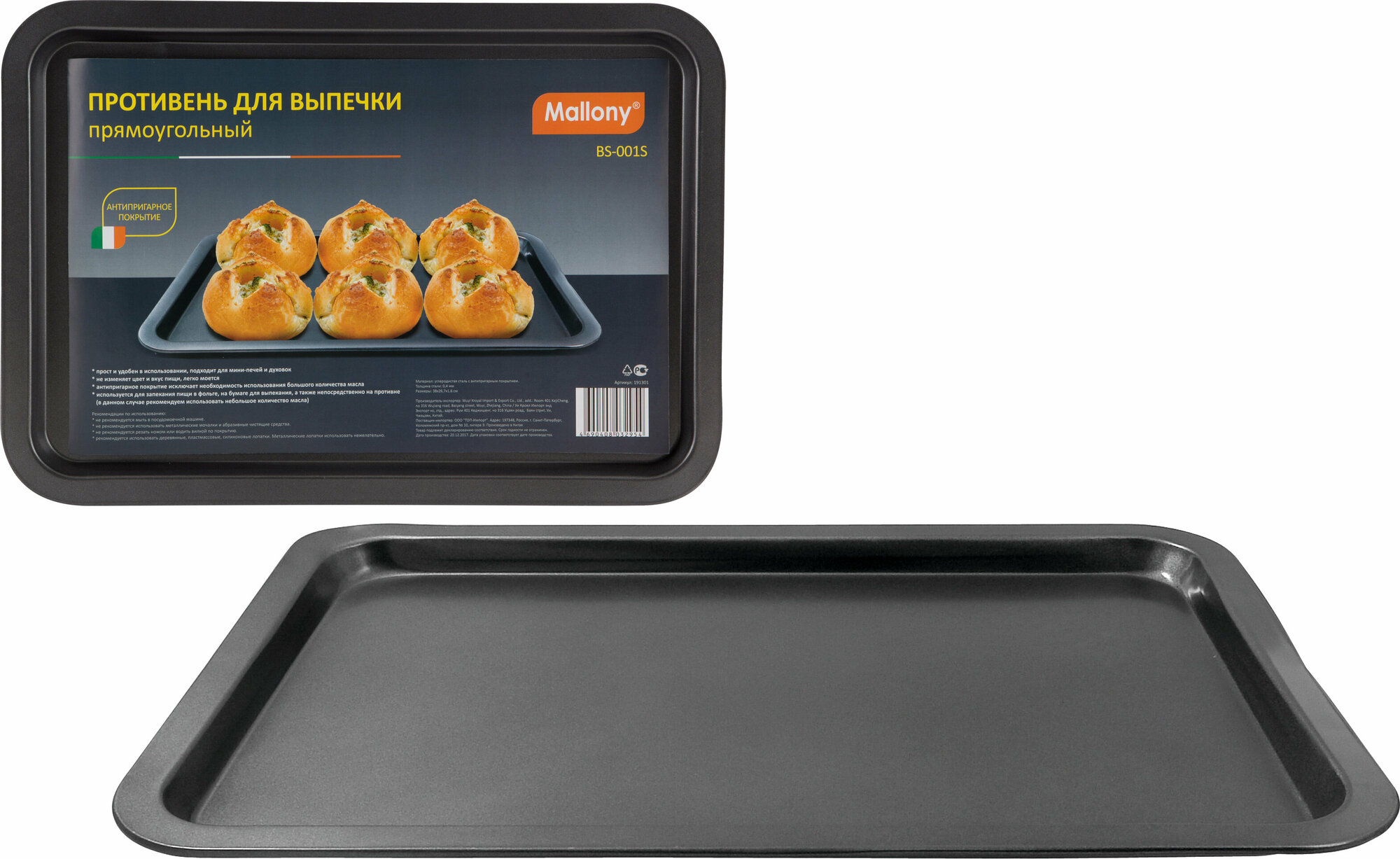 Mallony противень для духовки BS-001S прямоугольный, 38х26.7х1,6 см (арт 191301)