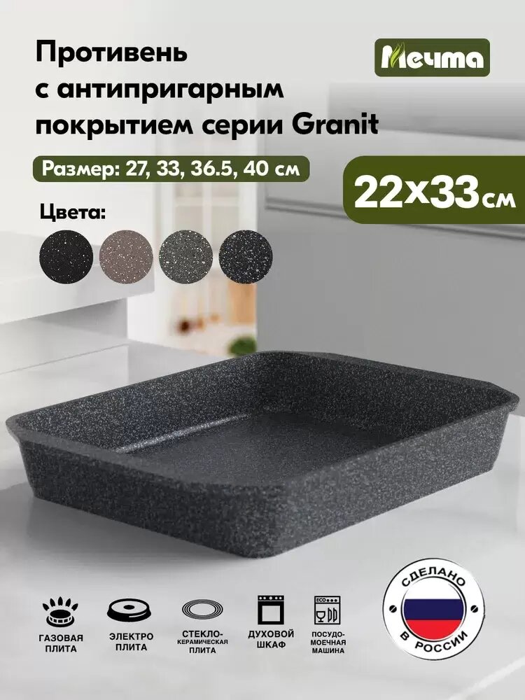 Противень "Мечта" 33*22 см Гранит с антипригарным покрытием, можно мыть в посудомоечной машине