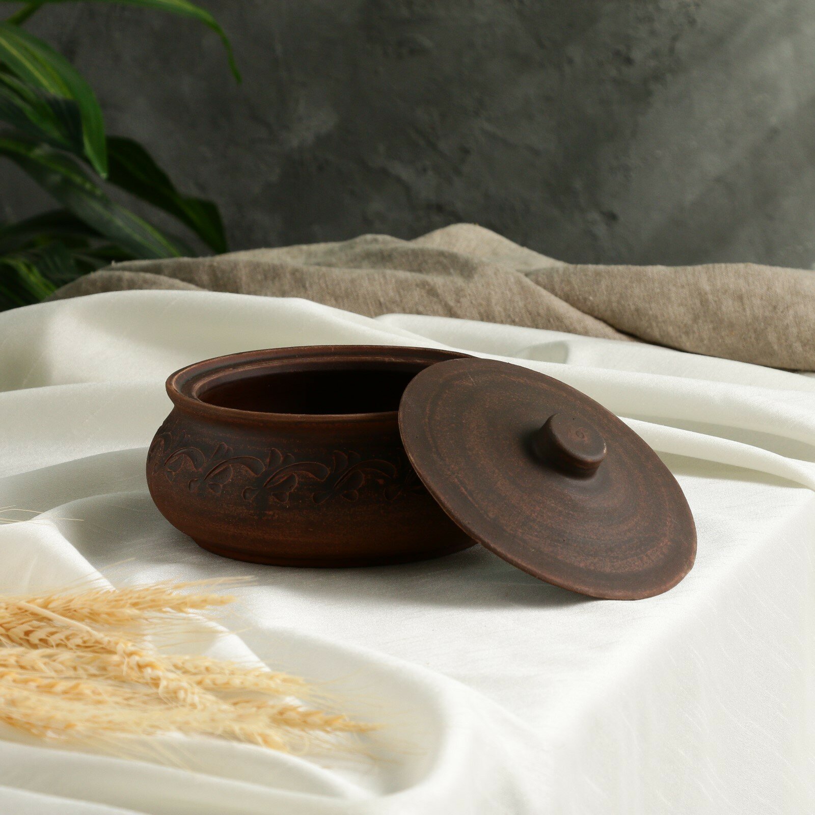 Горшок для запекания с крышкой "Поли", красная глина, 1 л, коричневый интересное: