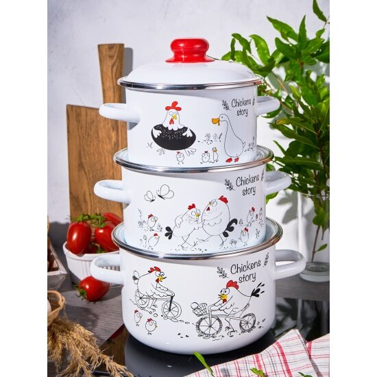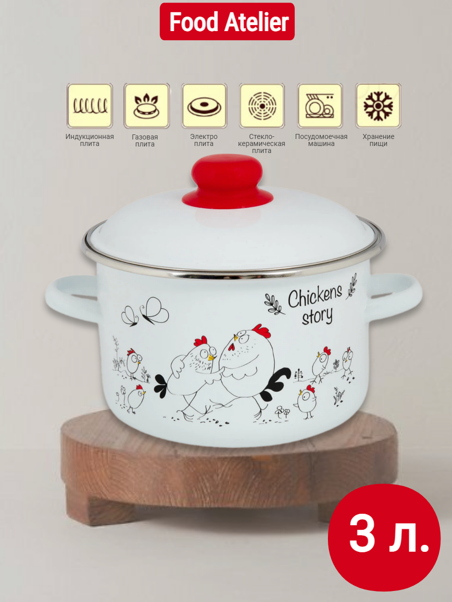 Кастрюля эмалированная с крышкой Chickens stories 3,0л ТМ FOOD ATELIER