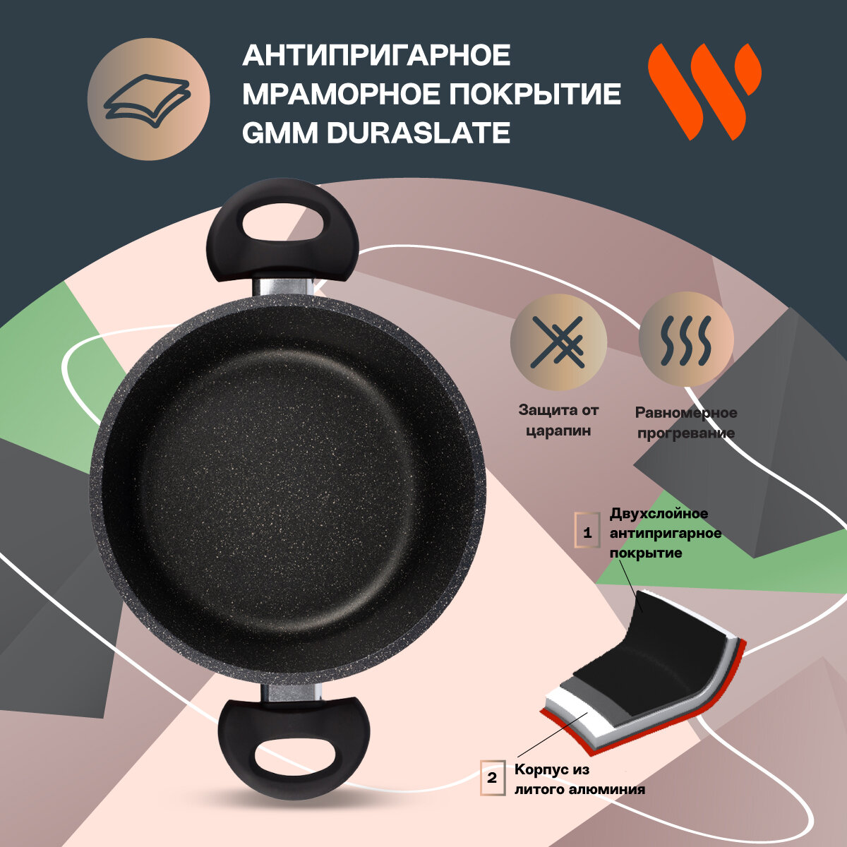 | Тип антипригарного покрытия | мраморное |