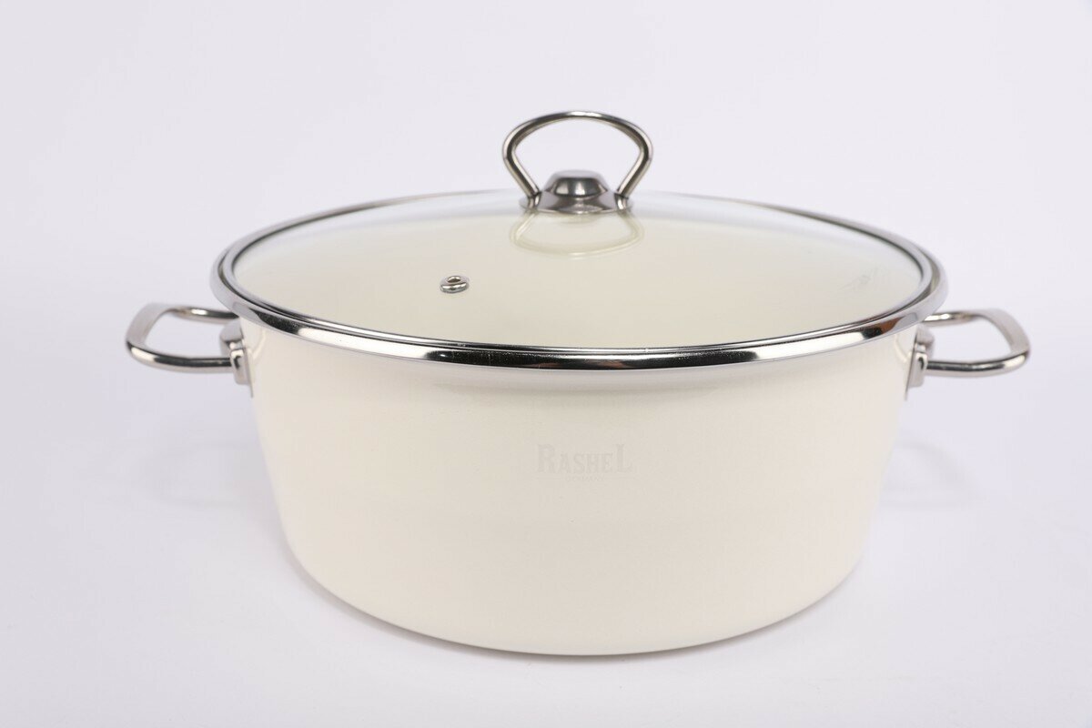 Кастрюля эмалированная с стеклянной термостойкой крышкой с паровыпуском RasheL 4,5 л
