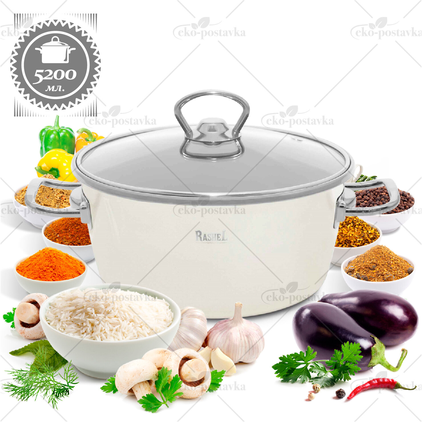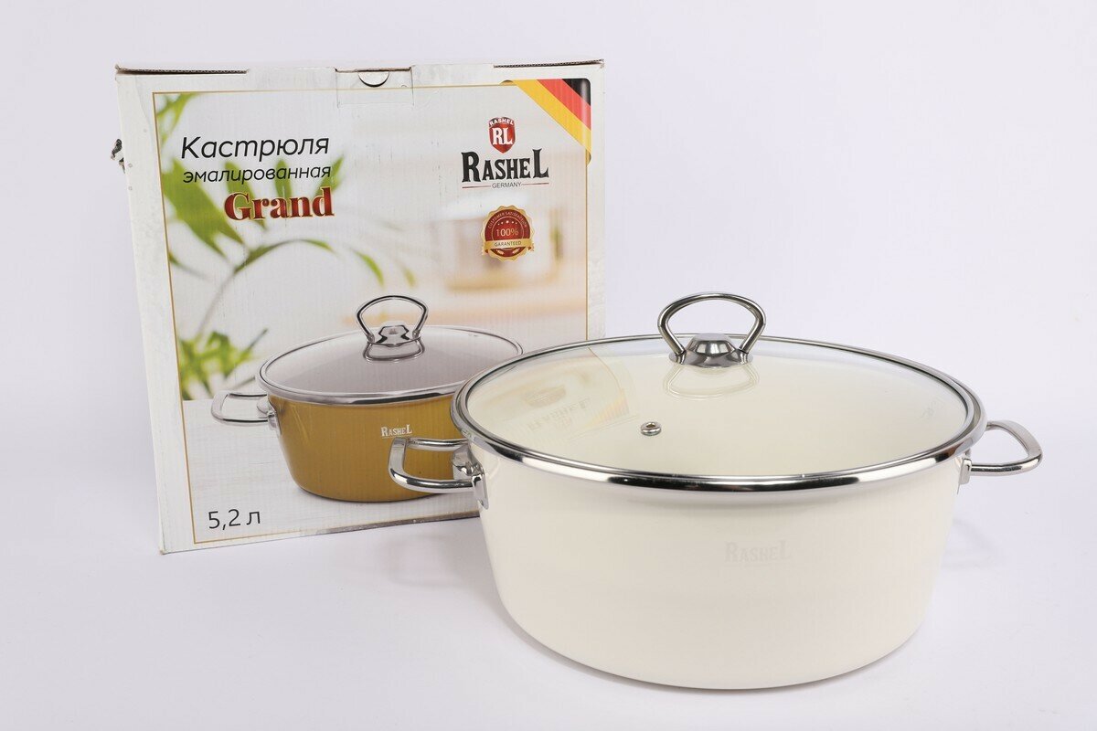 Кастрюля с крышкой эмалированная для индукционных плит Rashel Grand 5,2 л 26 см, кремовый R0926