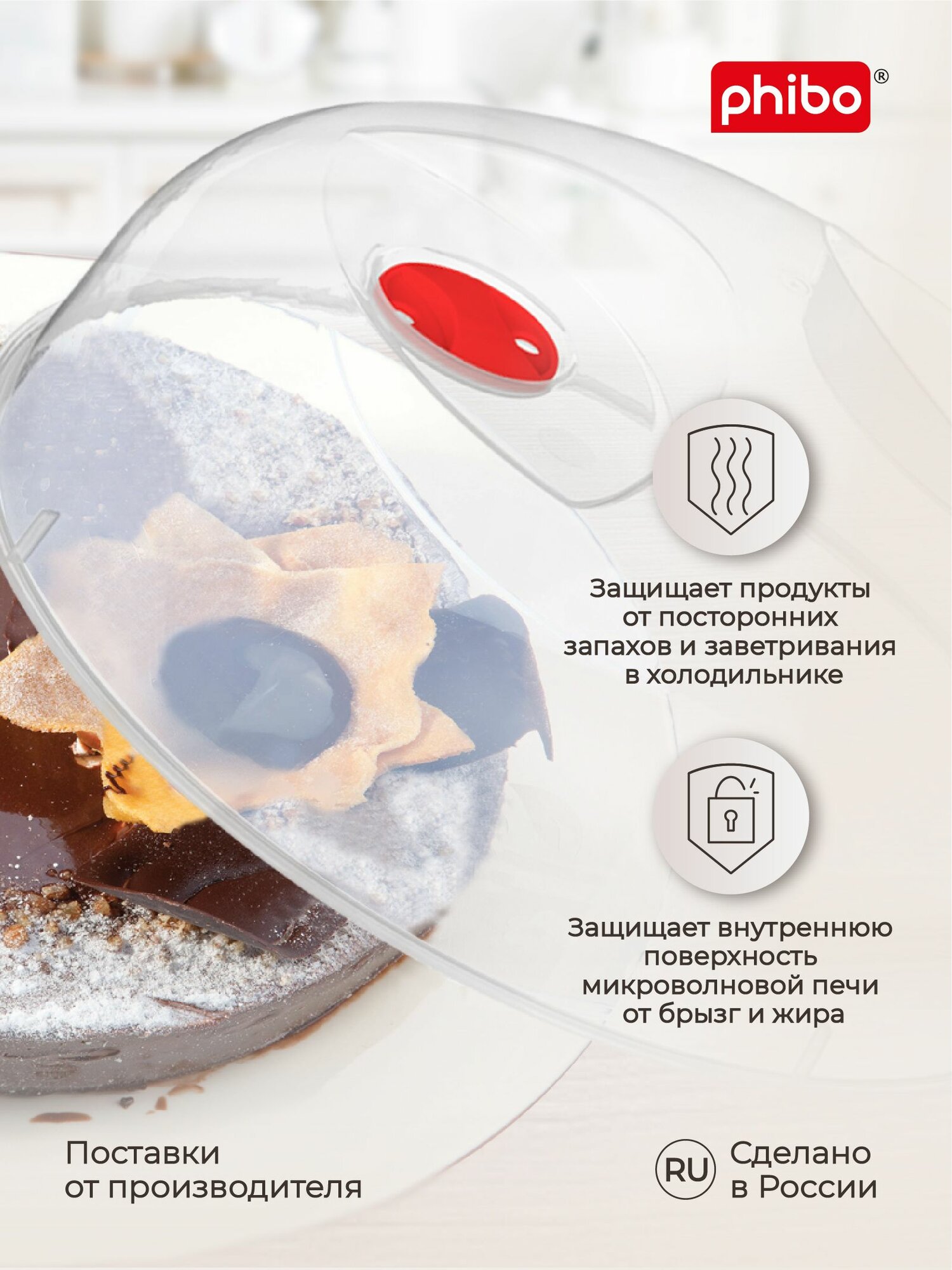 Крышка для микроволновой печи диаметр 29 cм. (черный), Phibo