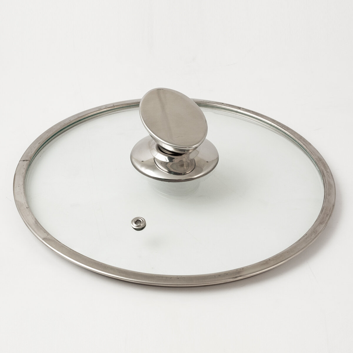 Крышка стеклянная TimA с металлическим ободком и овальной ручкой (нержавеющая сталь), пароотвод, диаметр 26 см