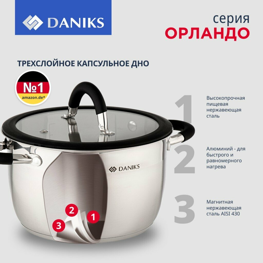 Купить Набор посуды Daniks Орландо 10 предметов, нержавеющая сталь, индукция