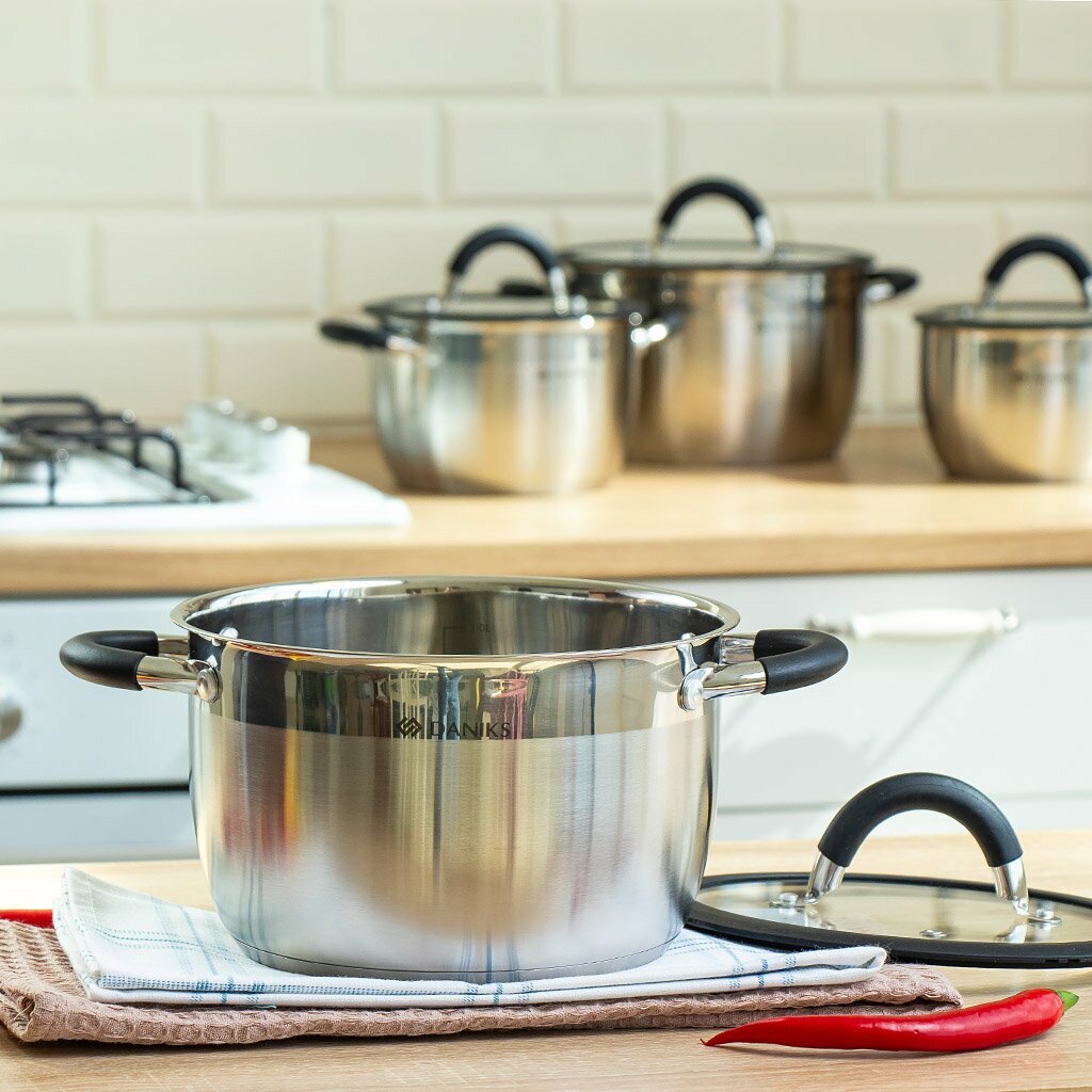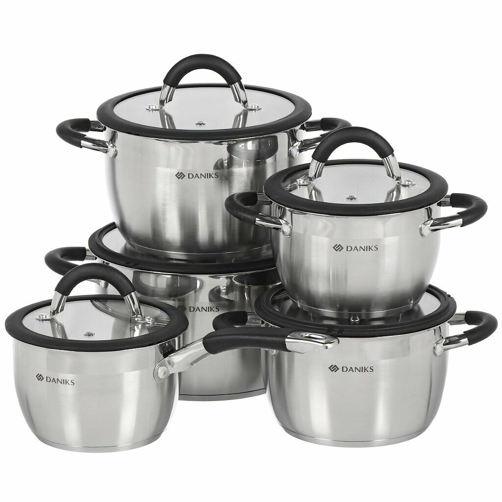 Набор посуды Daniks из нержавеющей стали, 10 предметов, кастрюли 1.9,2.7,3.7,4.9 л, ковш 1.9 л