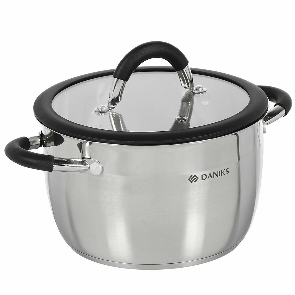 Набор посуды нержавеющая сталь, 6 предметов, кастрюли 1.9,2.9,3.9 л, индукция, Daniks, Классика, SD-6