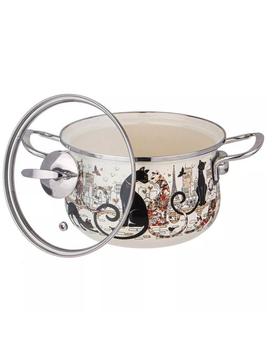 Набор кастрюль эмалированных: 2 штуки по 2 л и 2,8 л Agness "Парижские Коты" для всех видов плит 18 х 11 см, 20 х 12 см