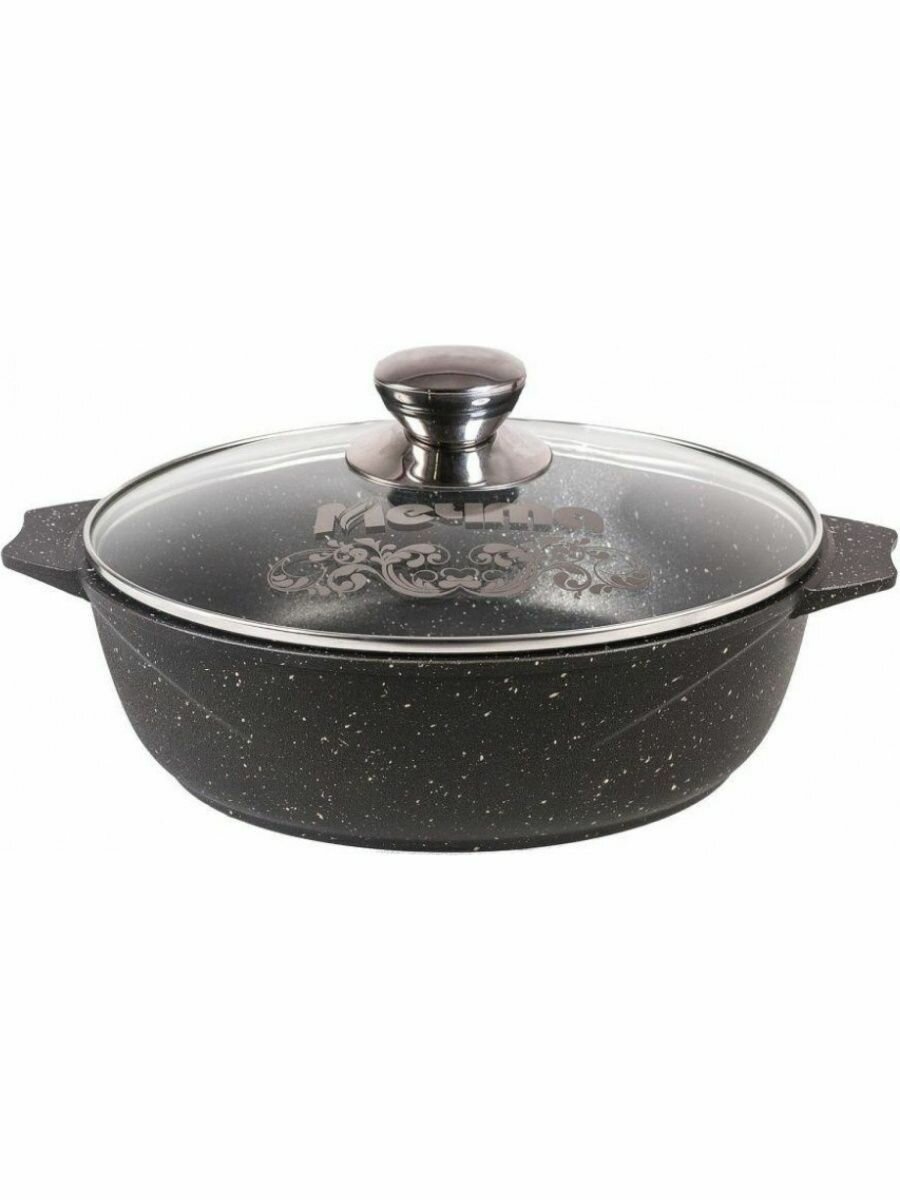 Жаровня 4 л Мечта Гранит 34802, черный гранит, крышка стекло