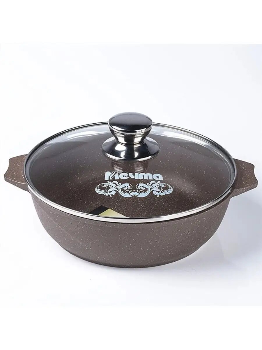 Жаровня 2,4 л Мечта Гранит Brown 32806, коричневый гранит, крышка стекло