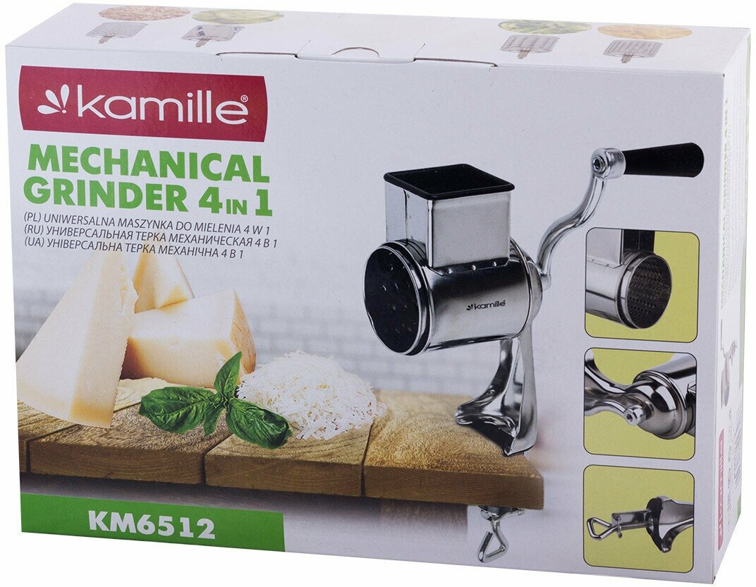 Тёрка универсальная механическая 4 в 1 Kamille KM-6512 из нержавеющей стали (серебристый) интересное:
