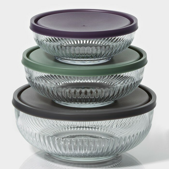 Набор стеклянных салатников с крышкой Lav «Токио», 2,6/1,5/0,8 л, 3 шт
