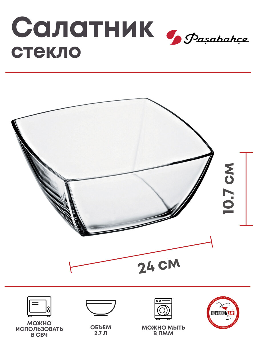 | Дополнительная информация | Салатник квадратный большой стеклянный 24х24 см бренда Pasabahce. |