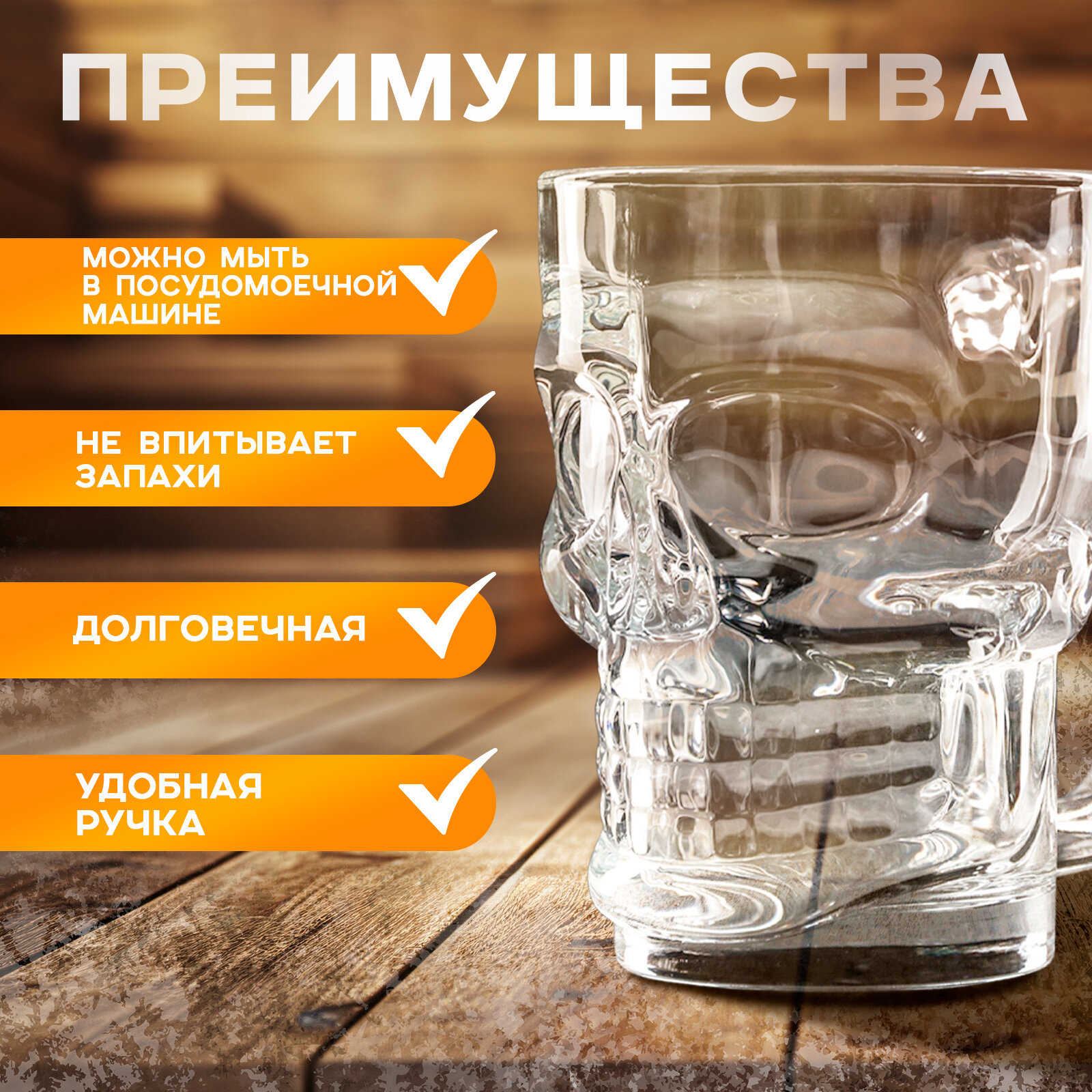 Кружка стеклянная для пива «Череп. Хэллоуин», 500 мл интересное: