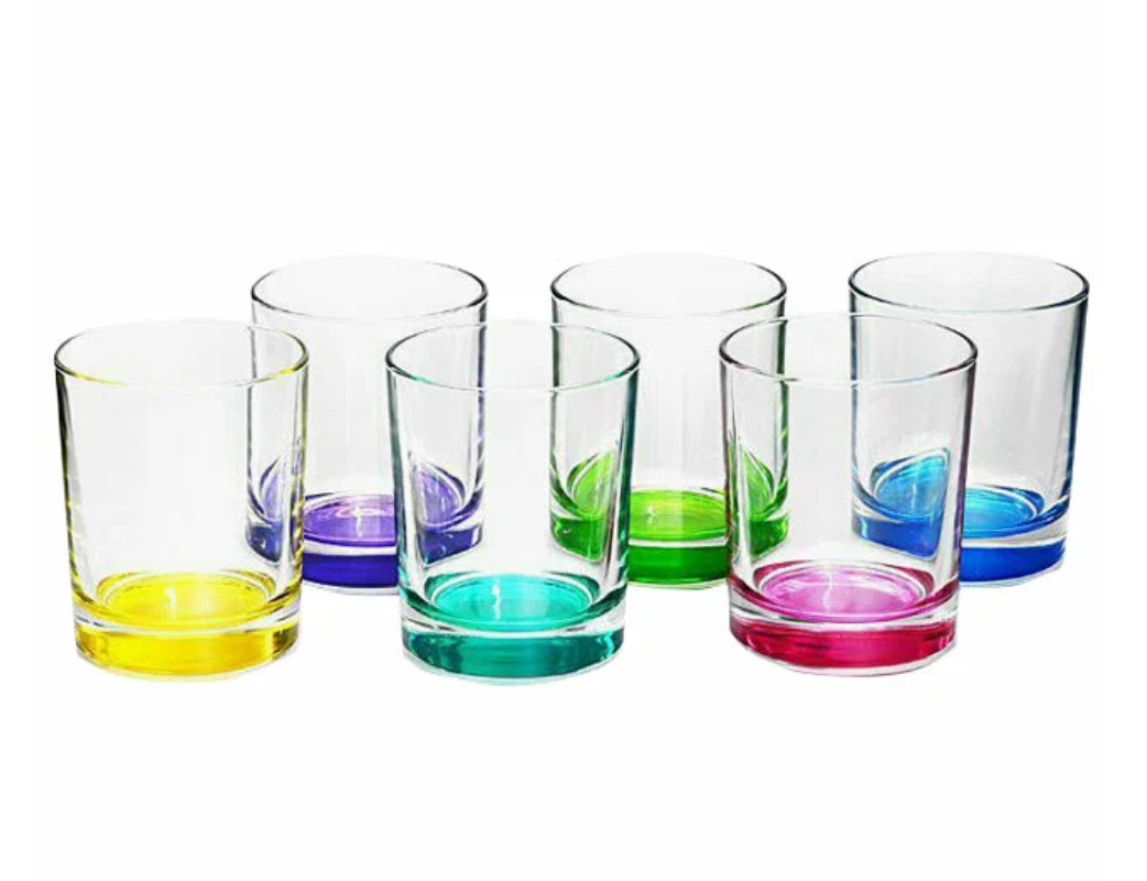 Купить Набор стаканов ОСЗ Ода Лак микс 240 мл, 6 штук, низкие, с цветным дном