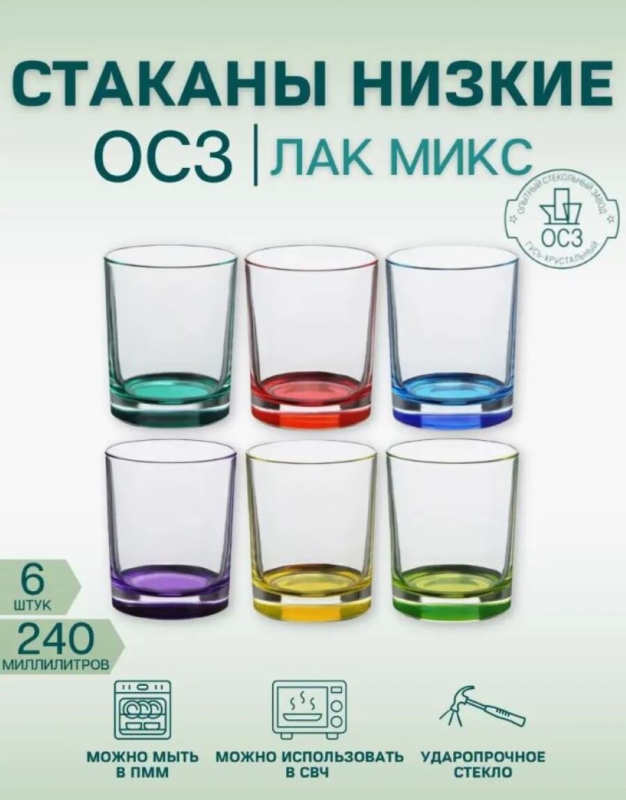 Набор стаканов ОСЗ Ода Лак микс 240 мл, 6 штук, низкие, с цветным дном интересное: