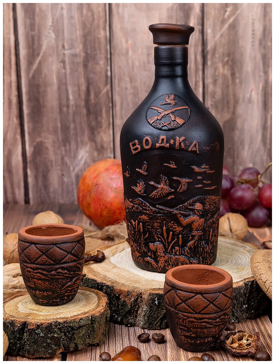 Набор графин с рюмками для алкогольных напитков, для водки, керамический, глиняная посуда для дома и кухни, набор бутылка и 2 рюмки
