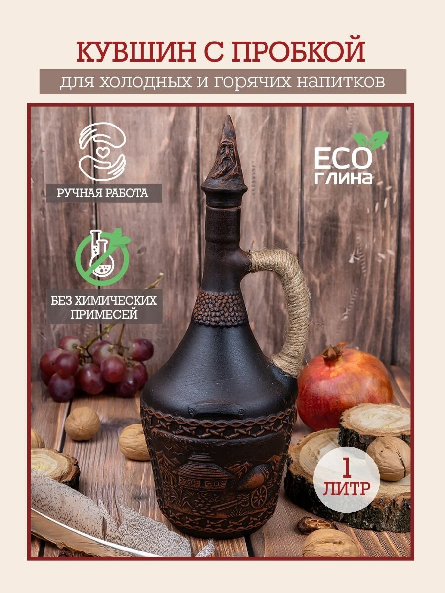 Кувшин для воды глиняный, графин для вина, посуда для дома и дачи 1 л