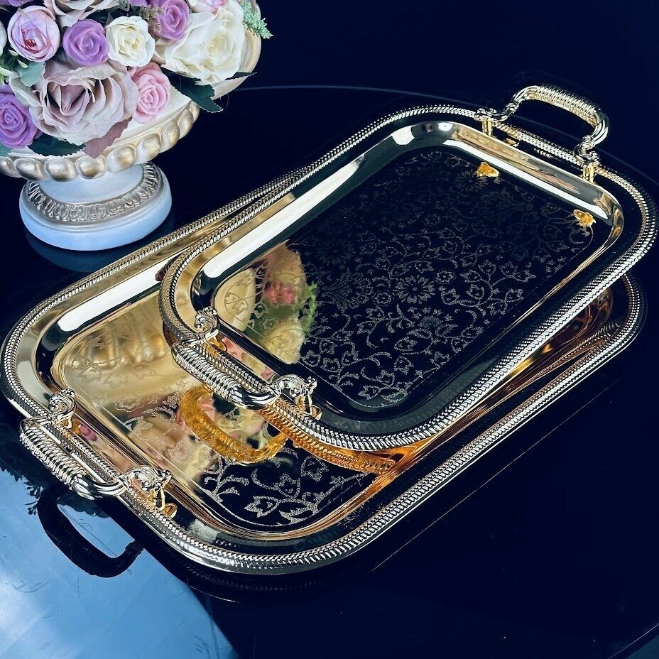 Набор из 2 прямоуголных подносов 32,5/40,5см Нержавеющая сталь Lenardi (184004)