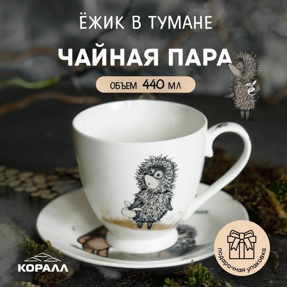 Чайная пара фарфор 440 мл Ежик в тумане в подарочной упаковке