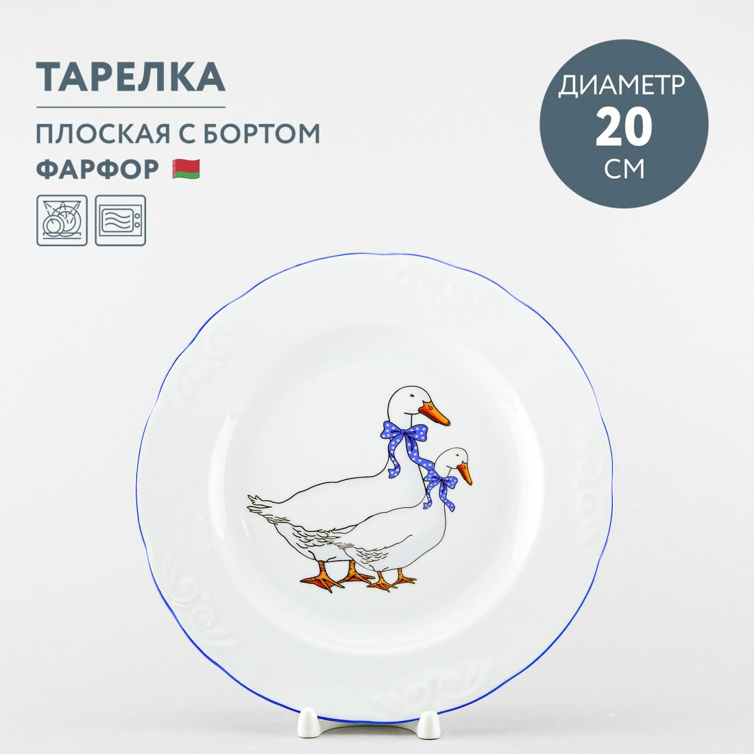 Тарелка обеденная 20 см Добрушский фарфор Гуси
