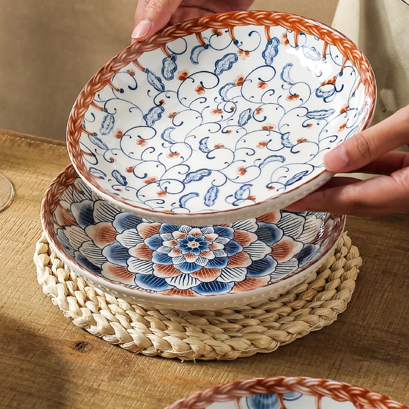 Керамическая тарелка Homium, Japanese Collection в японском стиле, обеденная тарелка с рисунком, голубой, D20см, набор 2шт.