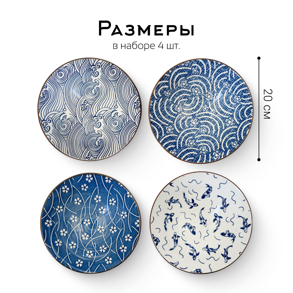 Набор тарелок Homium, Japanese Collection, глубокие, 4шт, цвет голубой, D20см