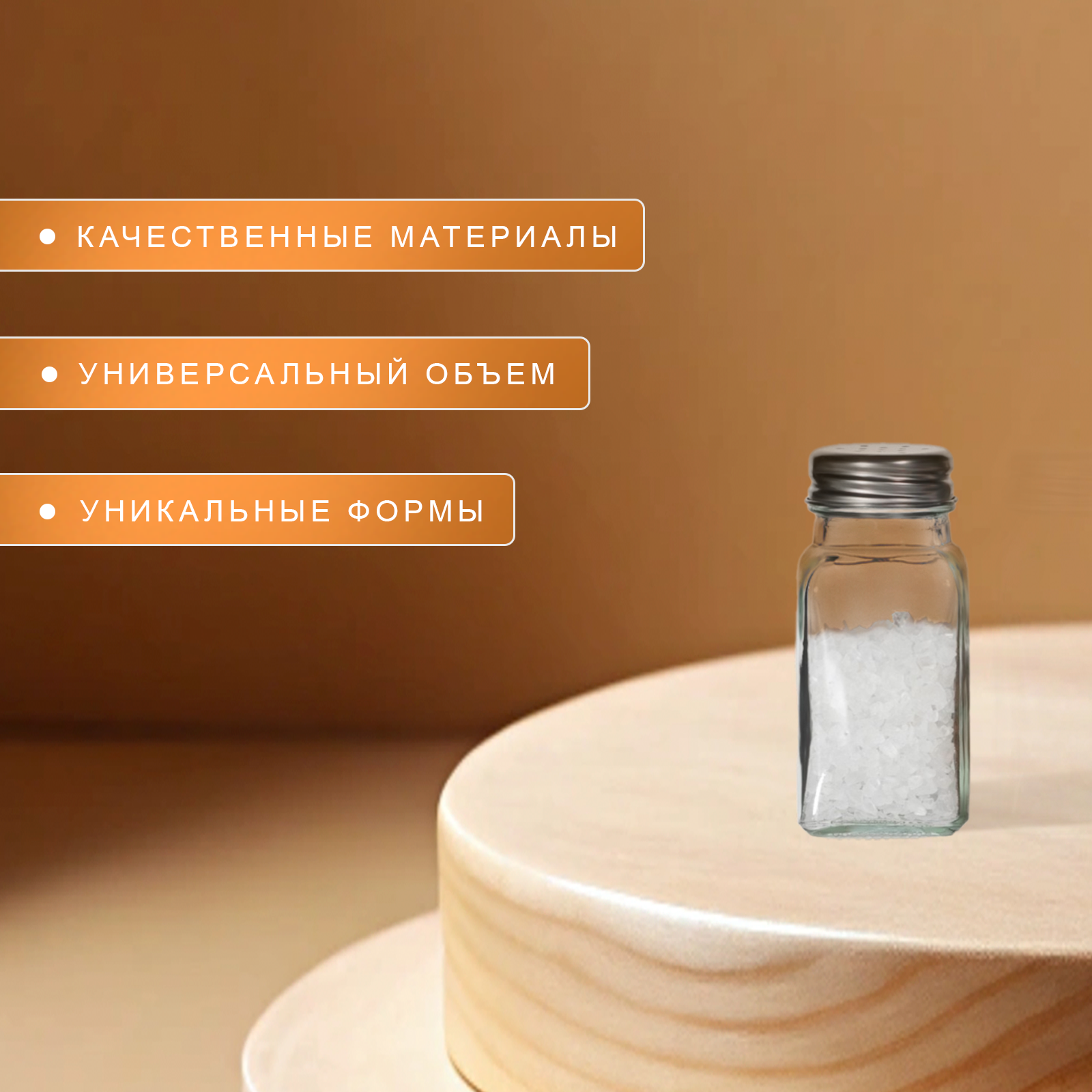 | Дополнительная информация | объем: 100 мл размеры 1 солонки: (4 см х 4 см х 9 см (Длина × Ширина × Высота) |