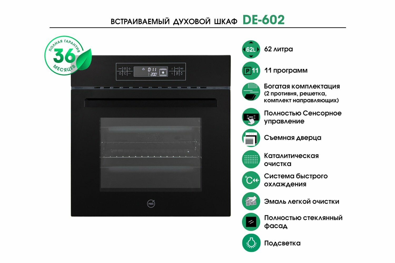 Духовой шкаф MBS DE-602, стекло черное