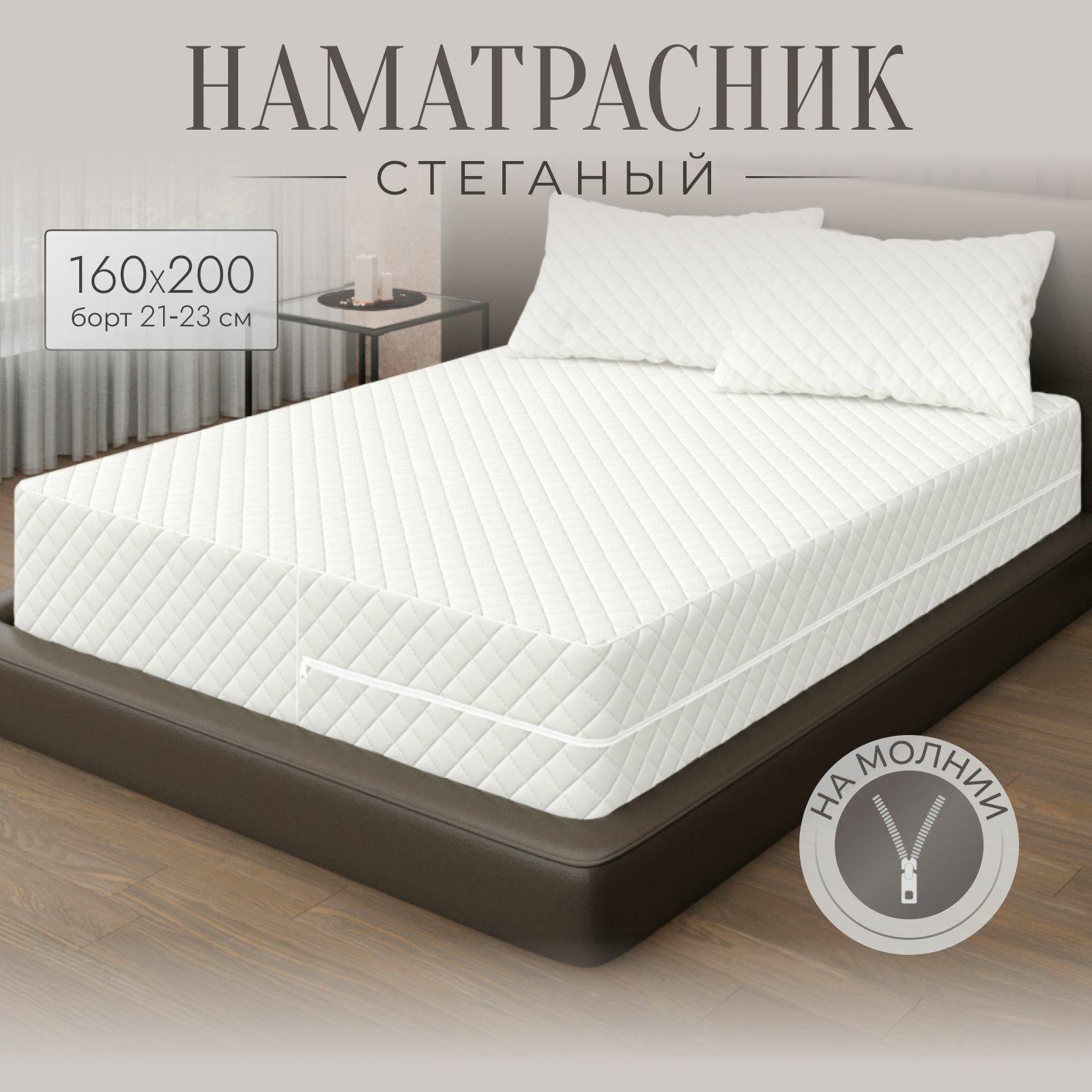 Наматрасник 160х200 стеганый чехол на матрас на молнии высота борта 21-23 см.