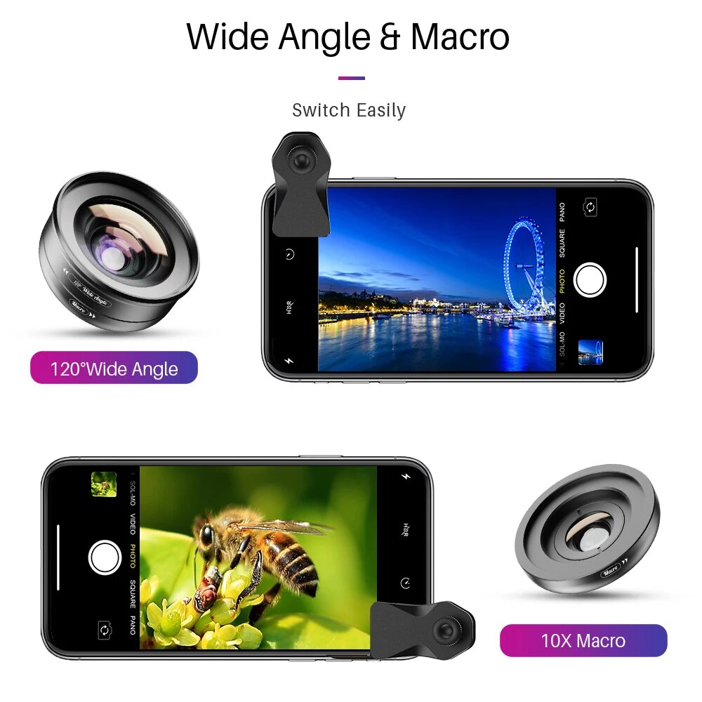 Объектив APEXEL для телефона, HD, 120 градусов, 4K, широкоугольный, 10x макрообъектив + Звездный фильтр CPL для Iphone, Samsung s9, всех смартфонов, only wide macro lens интересное: