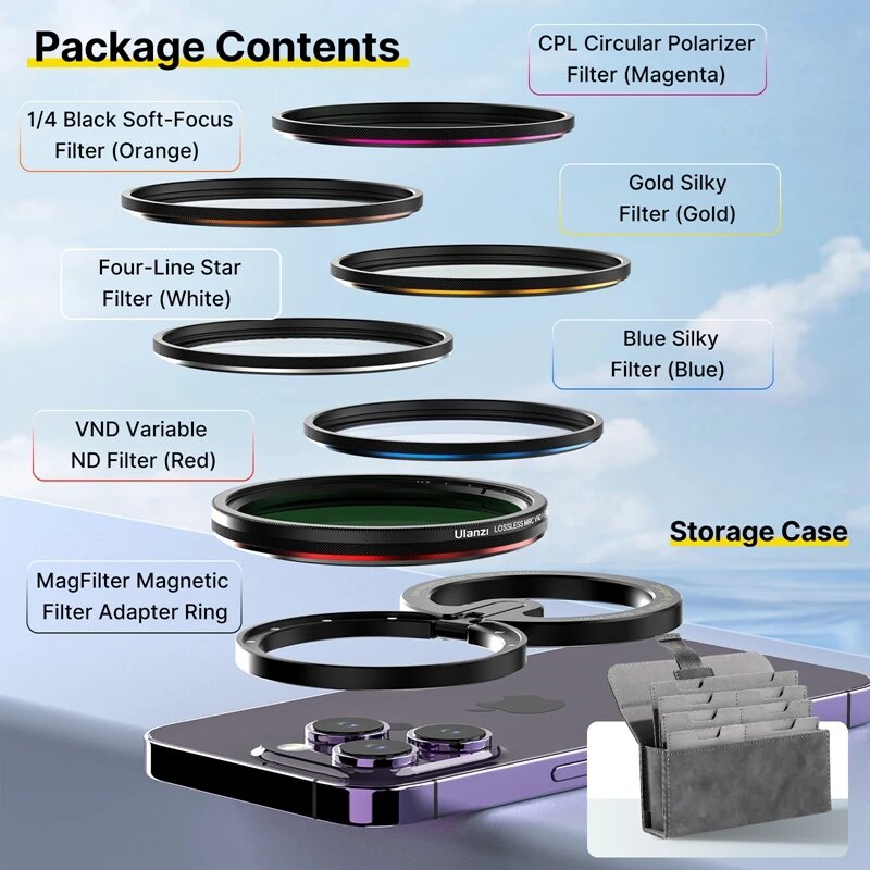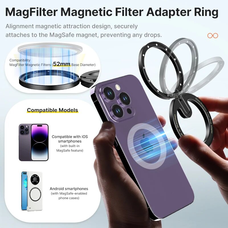 Ulanzi MagFilter 52 мм переходное кольцо магнитного фильтра Magsafe/регулируемые цветные фильтры для линз VND CPL для Iphone 15 14 13 12 Pro Max, 52MM Filters Kit интересное: