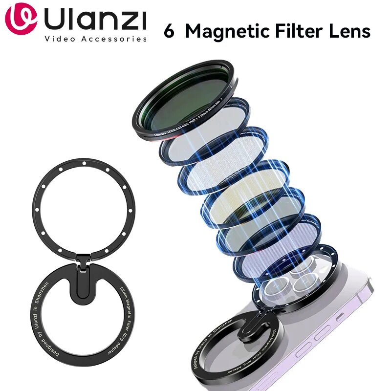 Купить Ulanzi MagFilter 52 мм переходное кольцо магнитного фильтра Magsafe/регулируемые цветные фильтры для линз VND CPL для Iphone 15 14 13 12 Pro Max, 52MM Filters Kit