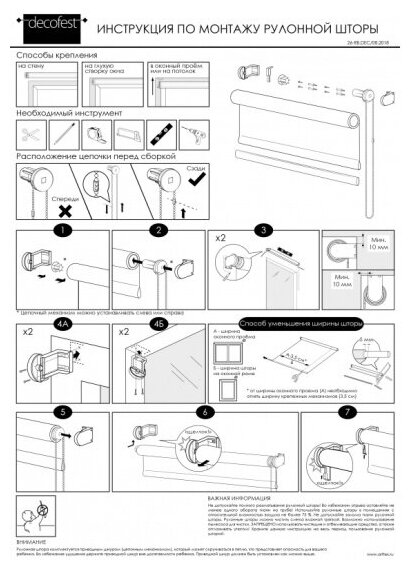 | Комплектация | Рулонная штора - 1 шт., монтажный комплект, инструкция |