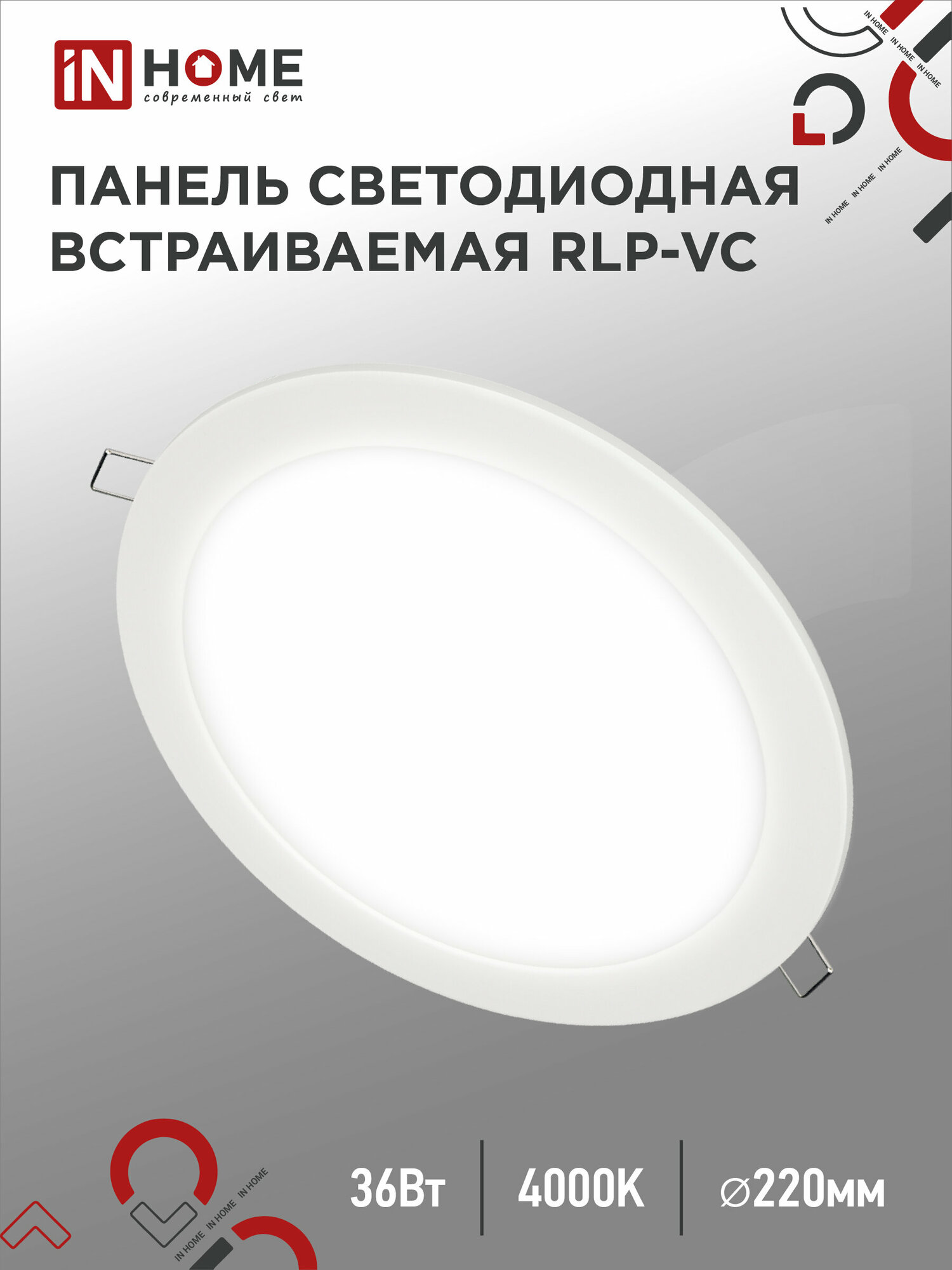Купить Панель светодиодная встраиваемая круглая RLP-VC 36Вт 230В 4000К 2880Лм 220мм белая IP40 IN HOME