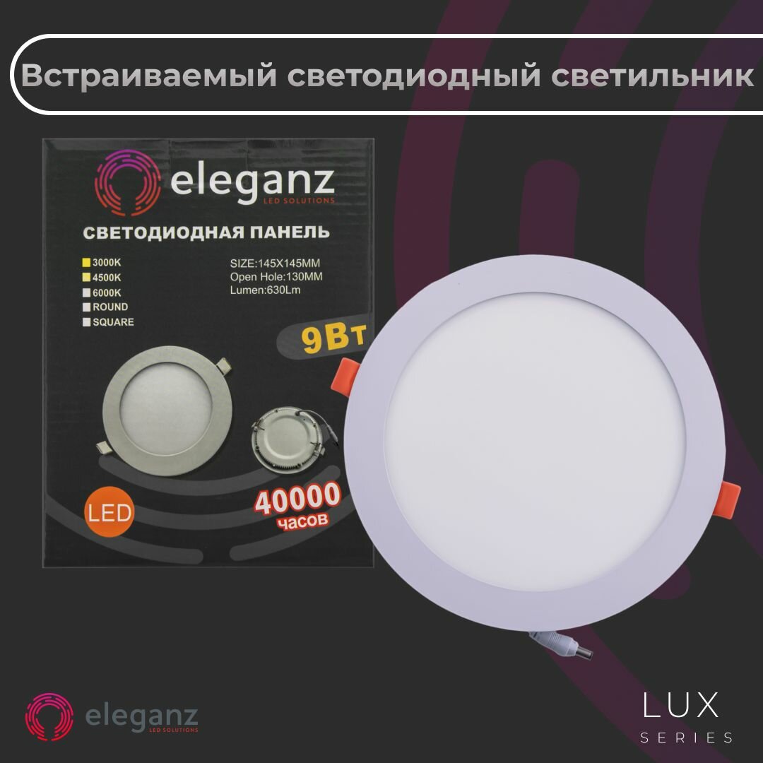 Купить Встраиваемый светильник "Eleganz" 9Вт Круг 6000К Светодиодная алюминиевая панель от сети 220 В, белый корпус