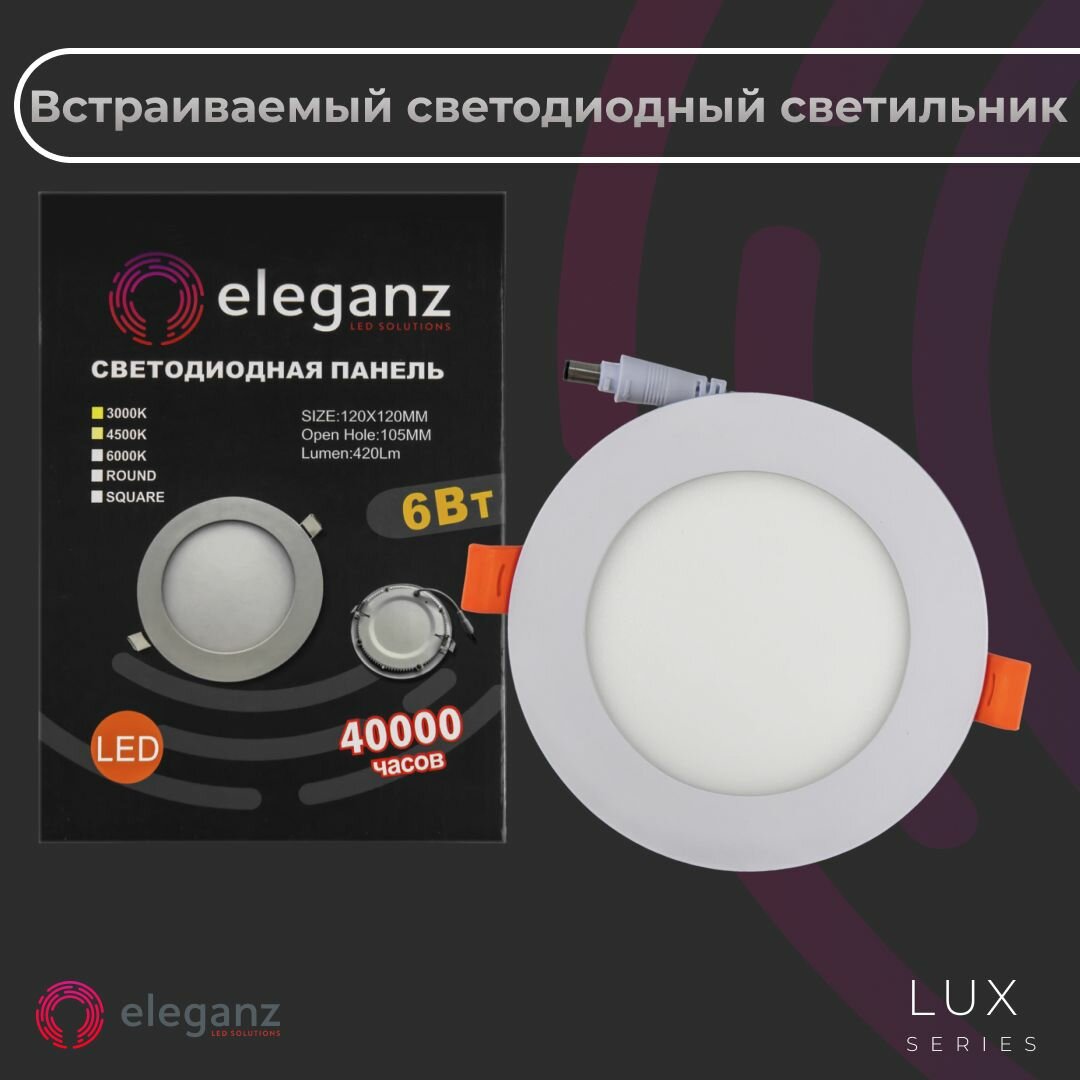 Купить Встраиваемый светильник "Eleganz" 6Вт Круг 6000К Светодиодная алюминиевая панель от сети 220 В, белый корпус