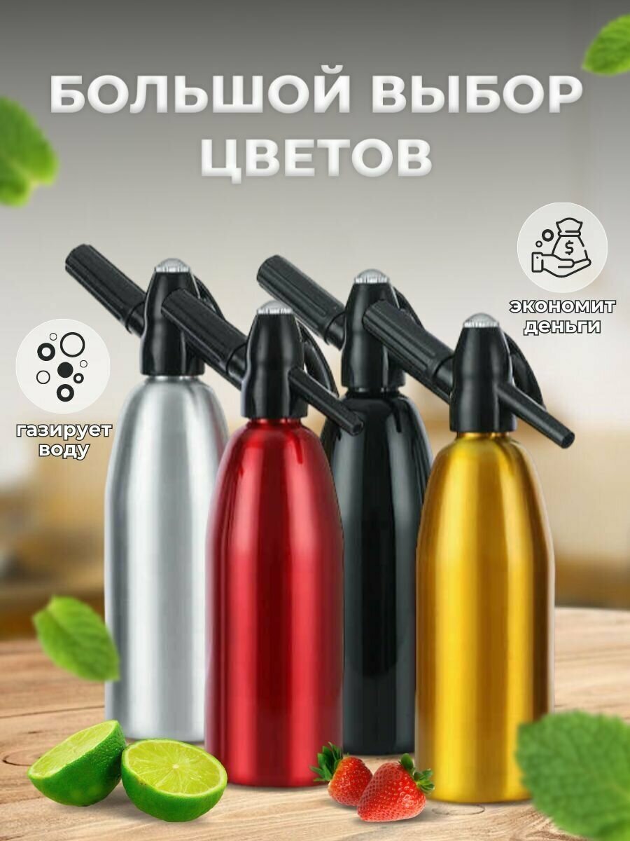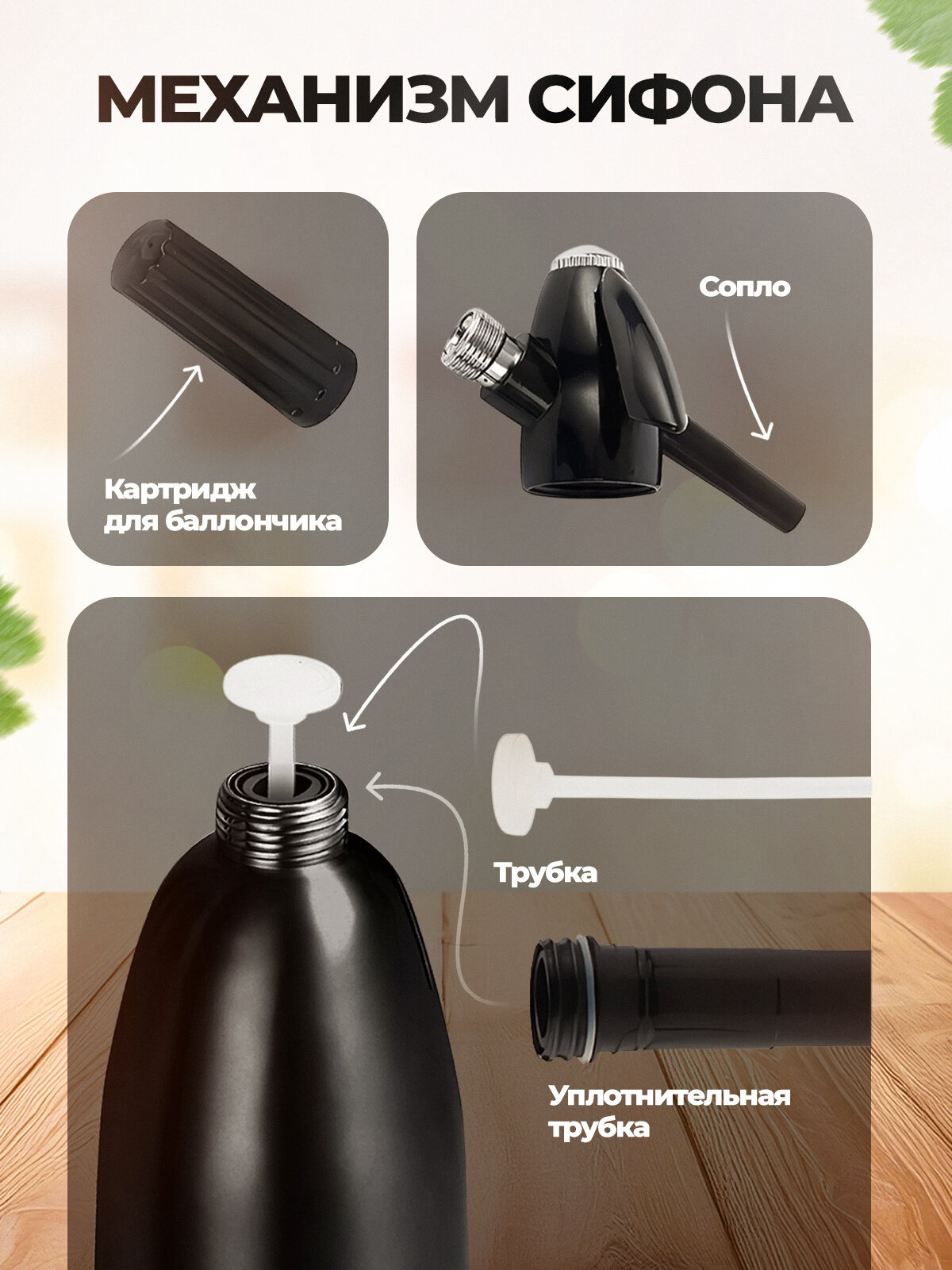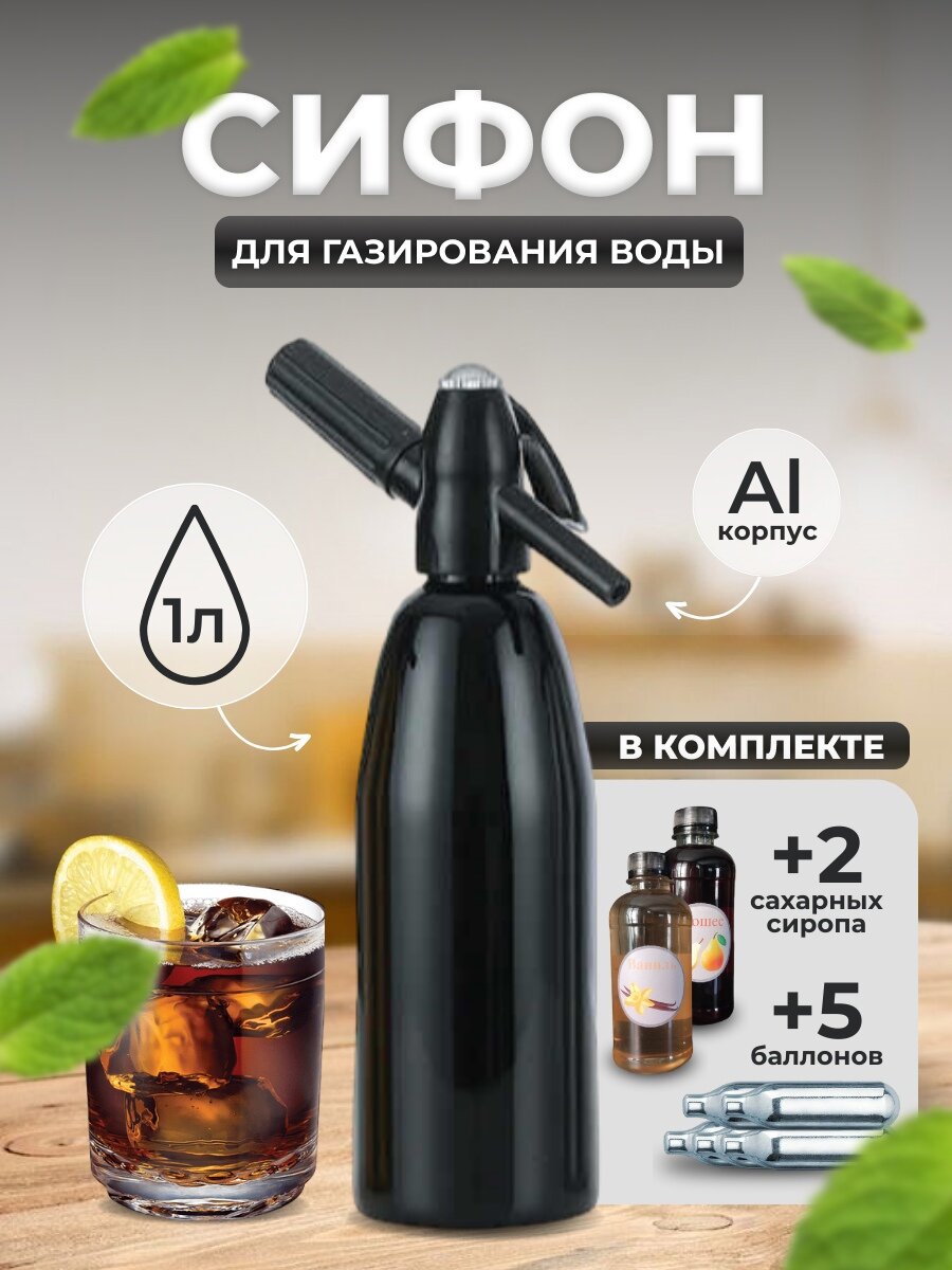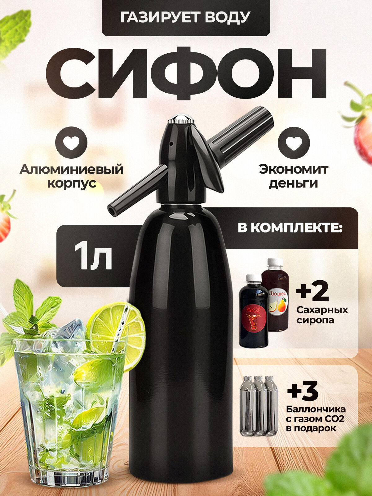 Сифон для газирования воды, 1 л, чёрный, сиропы и баллончики