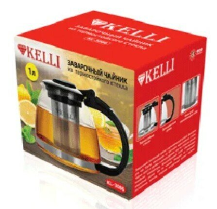 Стеклянный жаропрочный заварочный чайник Kelli KL-3086 / 1 л