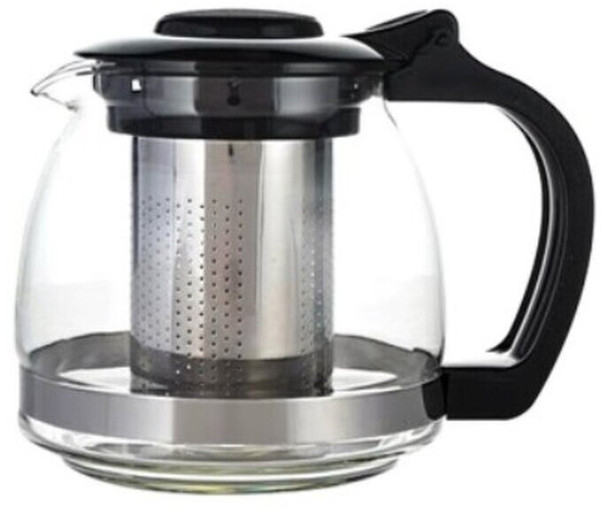 Заварочный чайник, чайник заварочный стеклянный с ситечком, чайник для заварки 1 литр, термостойкое стекло, фильтр из нержавеющей стали
