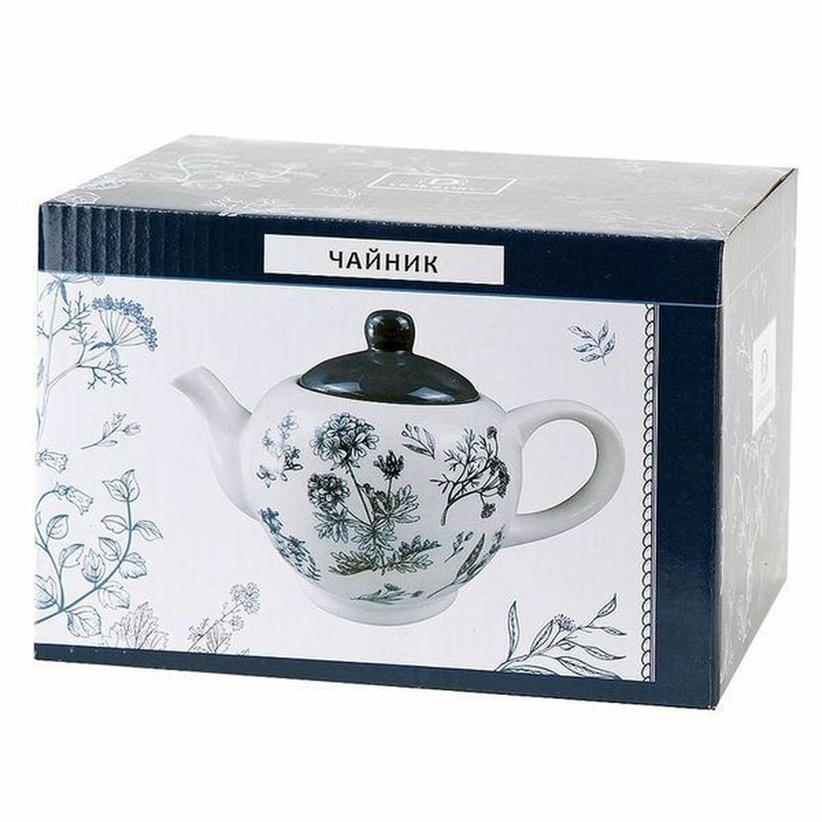 Чайник заварочный керамический Dolomite / Доломит Луговые травы L2520910 бело-синий, 980мл / заварник / посуда для чая