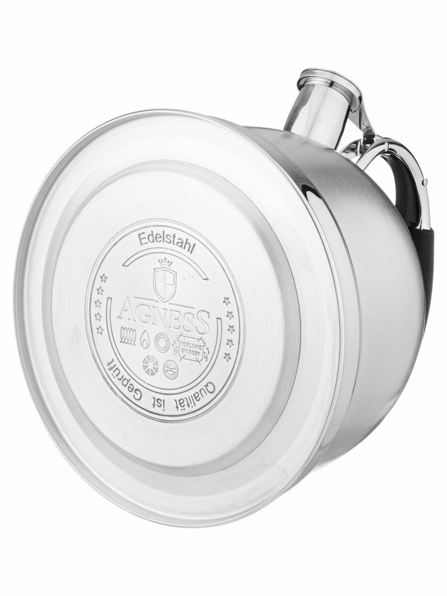 Чайник для плиты Agness со свистком 3 л, из нержавеющей стали, термоаккумулирующее дно, индукционное дно
