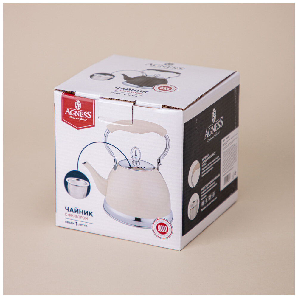 Чайник 937-871 agness с фильтром, 1,2 л c индукционным дном цвет: шампань